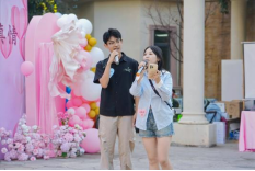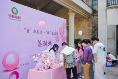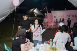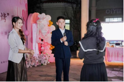 14:30,嘉宾们陆续抵达现场签到,领取专属号码牌——男生的蓝色卡片与女生的粉色卡片相映成趣,为这场相遇埋下浪漫的缘分伏笔。流行民谣的轻快旋律在草地间流转,甜品的香气在茶歇区悄然弥漫,粉色花影与气球轻摇,让活动现场的每一处都氤氲着温柔又甜蜜的气息。