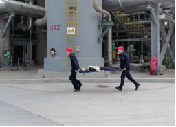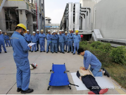 “担架与心肺复苏”项目模拟了现场顺酐装置反应器一氧化碳泄漏、人员中毒休克的场景,特别从应急基地借用心肺复苏专用模拟假人,重点考核选手防毒面罩的佩戴规范及心肺复苏动作的正确性。比赛中,选手们沉着冷静地完成应急处置,围观员工也纷纷驻足学习,实现了“以赛传技、以赛促学”的良好效果。